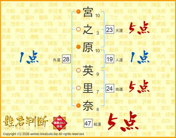 宮之原英里奈さんの総運は47画の5点!