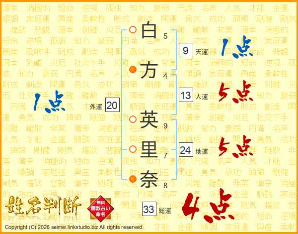 白方英里奈さんの総運は33画の4点!