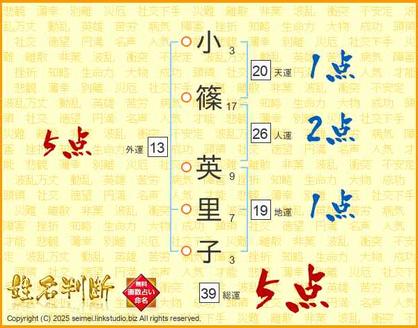 小篠英里子さんの総運は39画の5点!