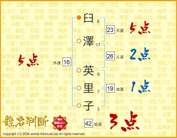 臼澤英里子さんの天運は23画の5点!