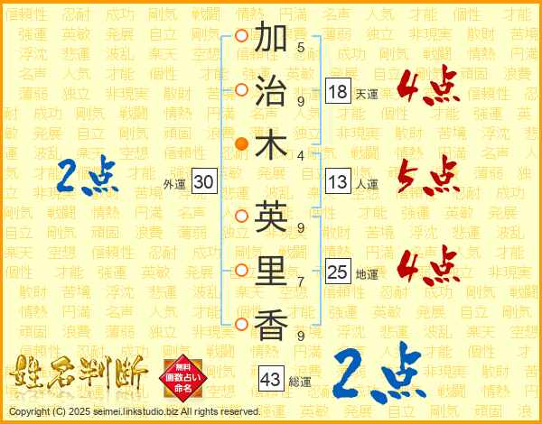 加治木英里香さんの地運は25画の4点!