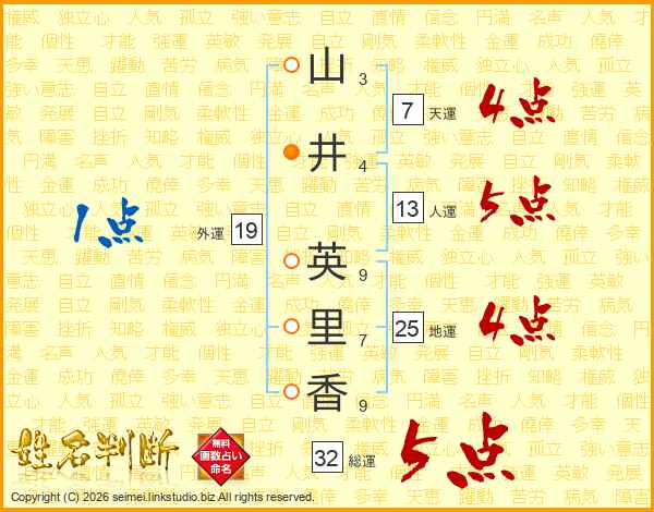 山井英里香さんの総運は32画の5点!