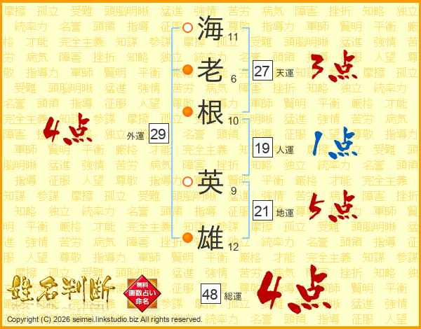 海老根英雄さんの総運は48画の4点!