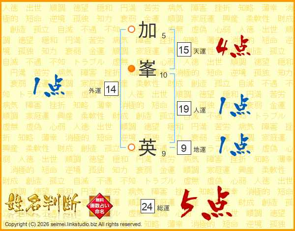 加峯英さんの総運は24画の5点!