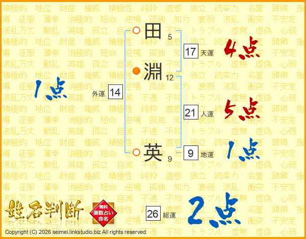 田(5画)淵(12画) 英(9画)
