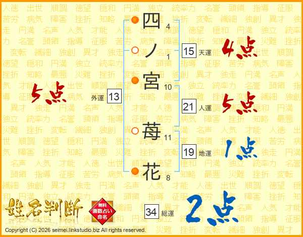 四(4画)ノ(1画)宮(10画) 苺(11画)花(8画)