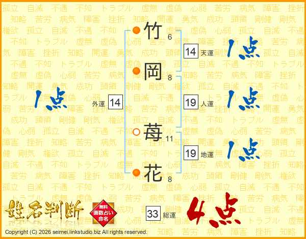竹岡苺花さんの総運は33画の4点!