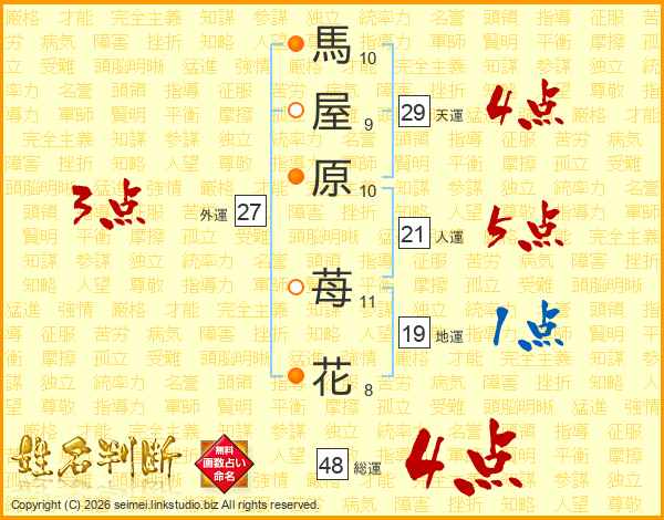 馬屋原苺花さんの総運は48画の4点!