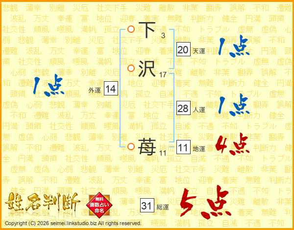下(3画)沢(17画) 苺(11画)