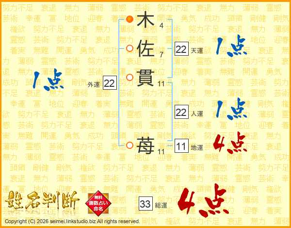 木佐貫苺さんの総運は33画の4点!