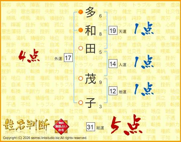 多和田茂子さんの総運は31画の5点!