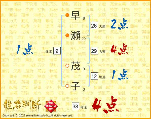 早瀬茂子さんの総運は38画の4点!