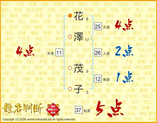 花澤茂子さんの総運は37画の5点!