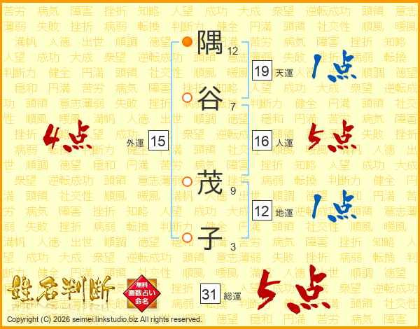 隅谷茂子さんの総運は31画の5点!