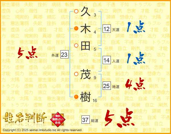久木田茂樹さんの総運は37画の5点!