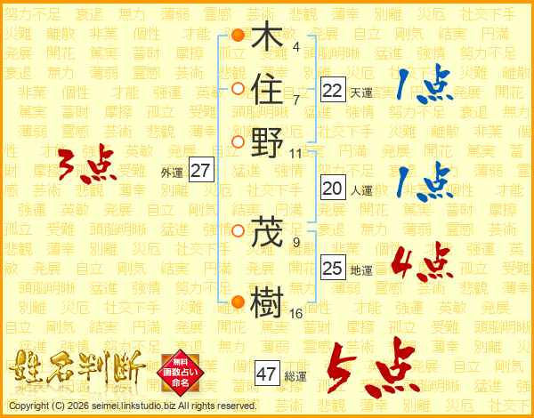 木住野茂樹さんの地運は25画の4点!