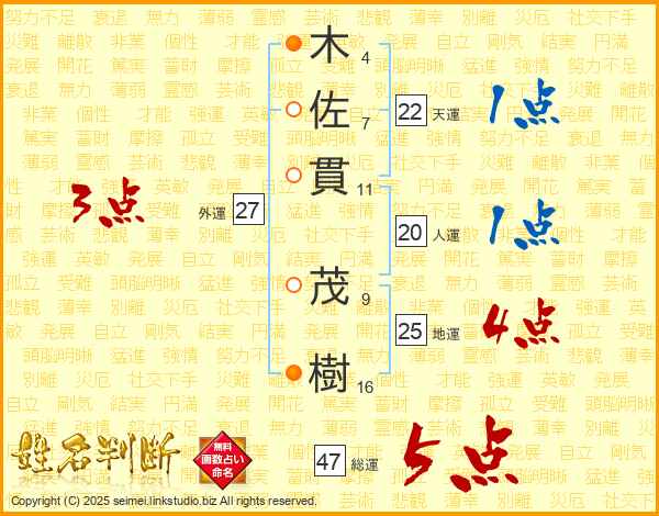 木佐貫茂樹さんの総運は47画の5点!