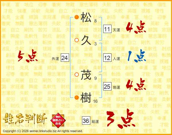 松(8画)久(3画) 茂(9画)樹(16画)