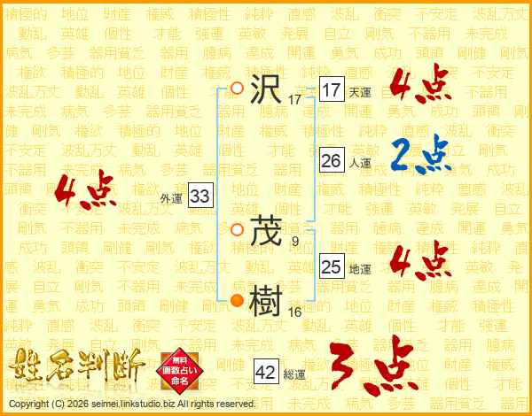 沢(17画) 茂(9画)樹(16画)