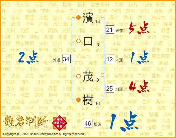 濱口茂樹さんの天運は21画の5点!