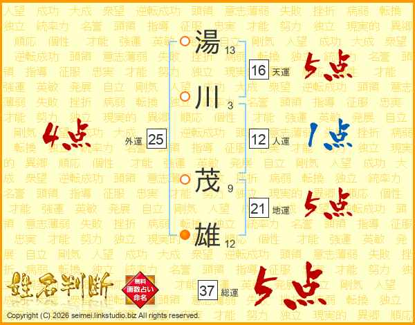 湯川茂雄さんの総運は37画の5点!