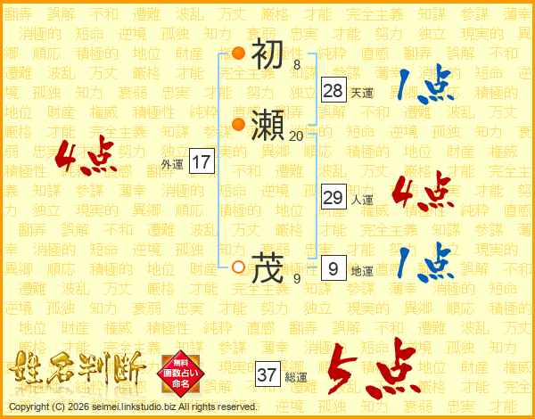 初瀬茂さんの総運は37画の5点!
