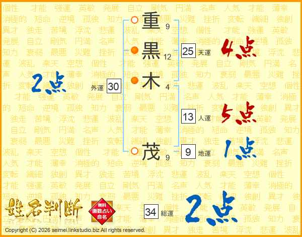 重黒木茂さんの総運は34画の2点!