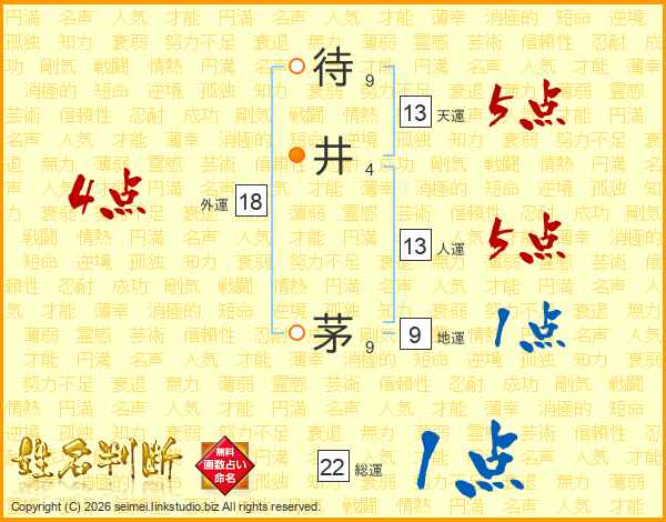 待井茅さんの天運は13画の5点!