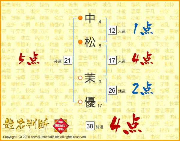 中松茉優さんの総運は38画の4点!