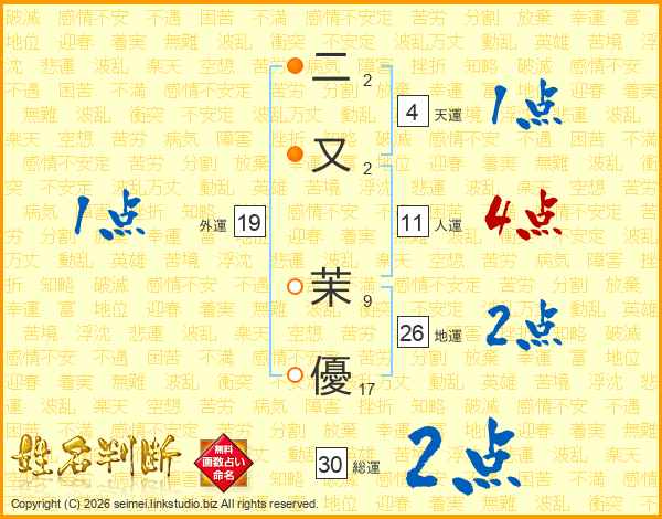 二又茉優さんの地運は26画の2点!
