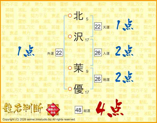 北沢茉優さんの総運は48画の4点!