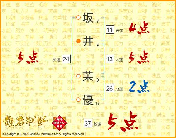 坂井茉優さんの総運は37画の5点!