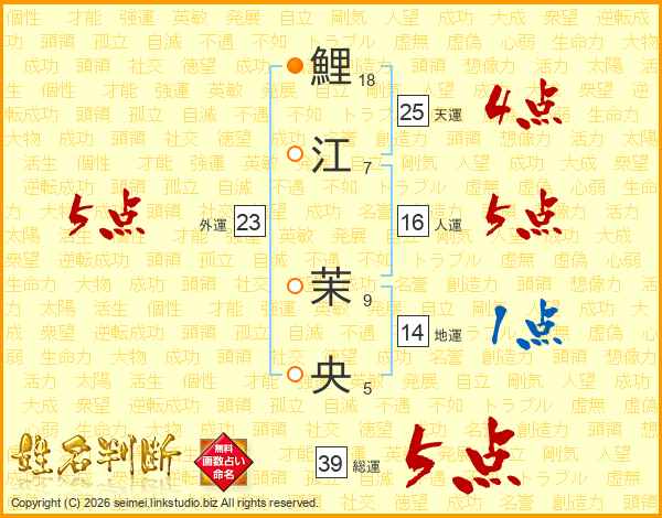 鯉江茉央さんの総運は39画の5点!