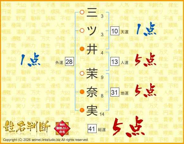 三ツ井茉奈実さんの地運は31画の5点!