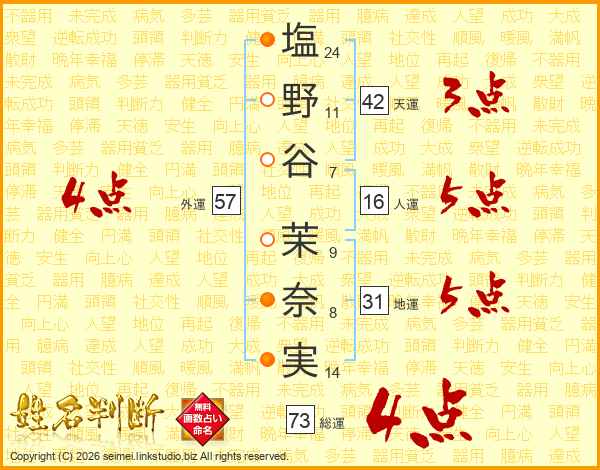 塩野谷茉奈実さんの総運は73画の4点!