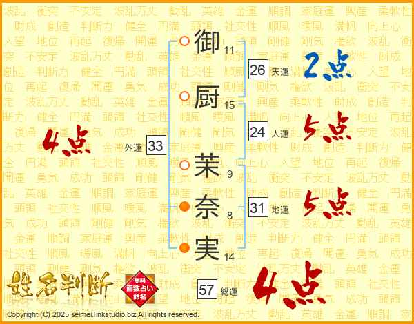 御厨茉奈実さんの外運は33画の4点!