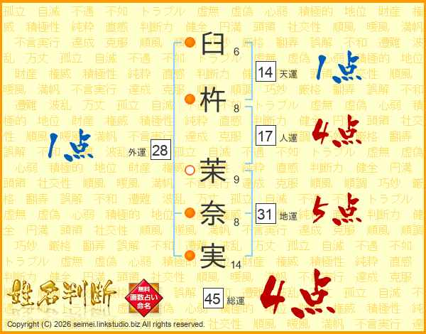 臼杵茉奈実さんの総運は45画の4点!