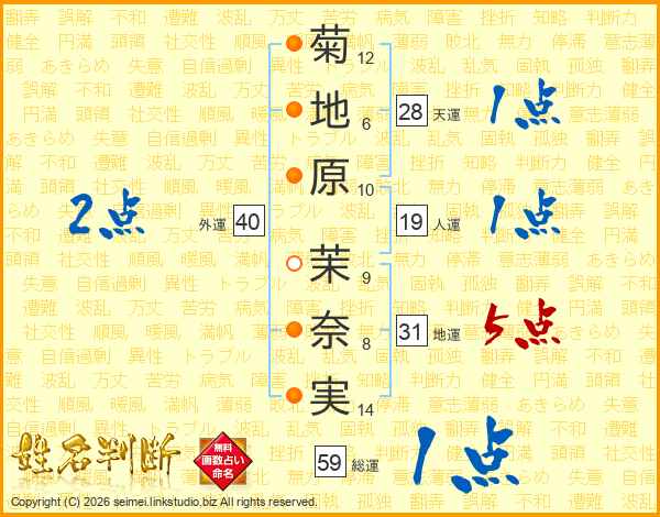 菊地原茉奈実さんの総運は59画の1点!