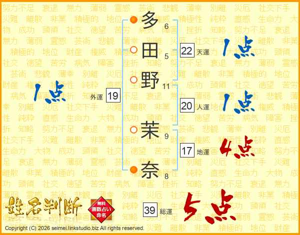 多田野茉奈さんの総運は39画の5点!