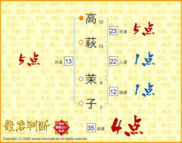 高萩茉子さんの総運は35画の4点!