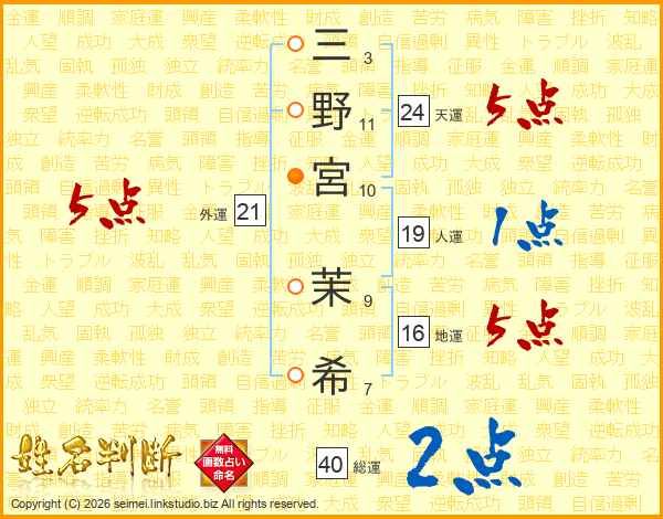 三野宮茉希さんの外運は21画の5点!