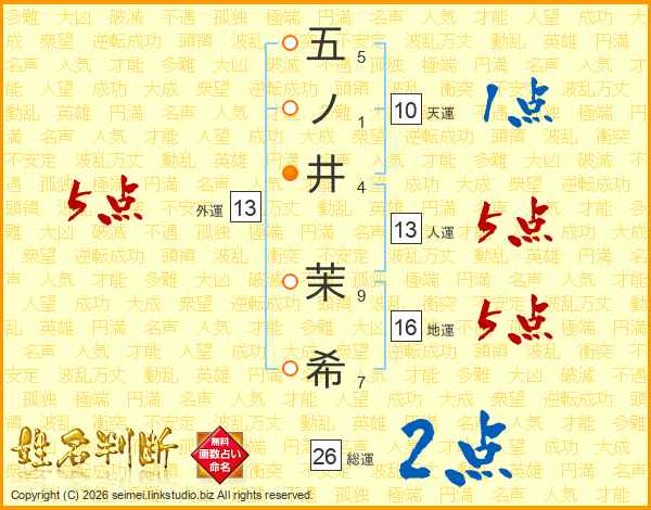 五ノ井茉希さんの外運は13画の5点!