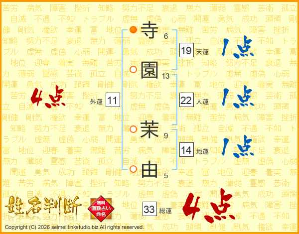 寺園茉由さんの総運は33画の4点!