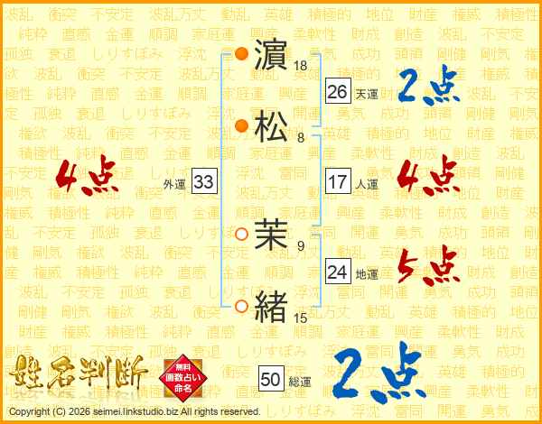 濵松茉緒さんの外運は33画の4点!