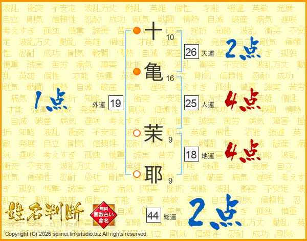 十亀茉耶さんの総運は44画の2点!