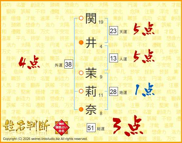関井茉莉奈さんの総運は51画の3点!