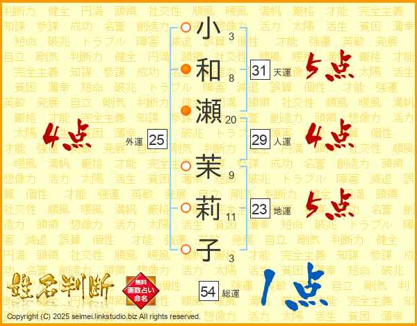 小和瀬茉莉子さんの天運は31画の5点!