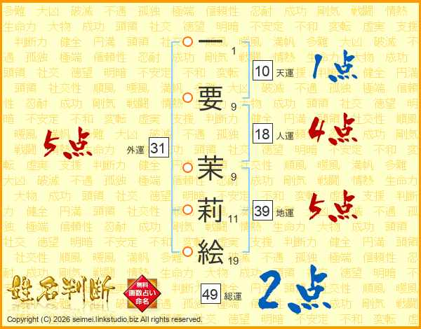一要茉莉絵さんの地運は39画の5点!