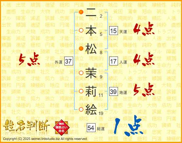 二本松茉莉絵さんの外運は37画の5点!
