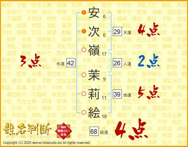 安次嶺茉莉絵さんの総運は68画の4点!